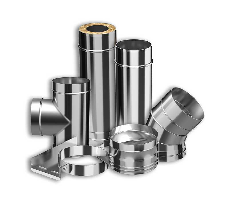 Комплект печных изделий из листовой стали, предназначенный для формирования канала, отводящего топочные газы, образующиеся при сгорании твёрдого или газообразного топлива в процессе работы теплогенерирующих устройств: печей \котлов\каминов.