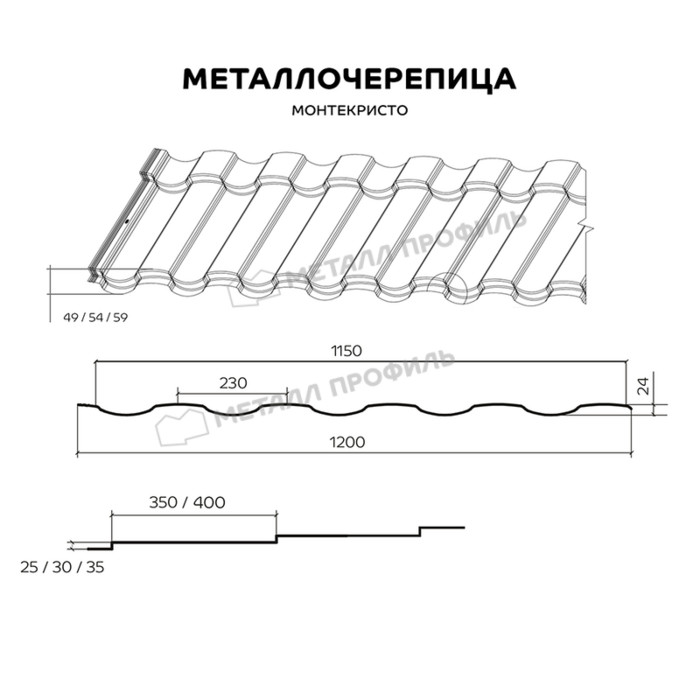 МОНТЕКРИСТО подходит для использования в любых типах строительства или климатических условиях. Указанный профиль привлекательно смотрится на скатах большой и малой площади, акцентируя оригинальность всех типов крыши. Длина и высота ступеней стальной черепицы ― 350, 400 мм и 25, 30, 35 мм, соответственно. Данный профиль выделяется элегантными классическими линиями в сочетании с умеренным рельефом, что подчёркивает сходство с керамикой. МОНТЕКРИСТО ― элегантное решение для вашего дома!